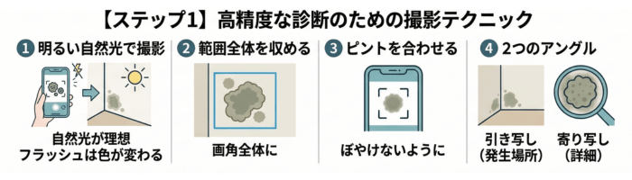 まずは診断したいカビや黒ずみを、スマホカメラで撮影します。
